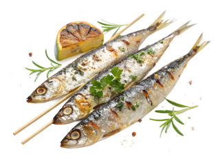 Fresh Sardines Isolated on Transparent Background.