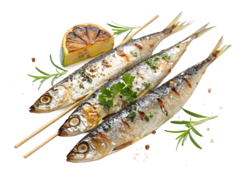 Three Shiny Sardines isolated on a Transparent or white Background