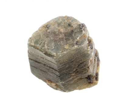 close up of sample of natural stone from geological collection - unpolished rhodochrosite crystal isolated on white background from China