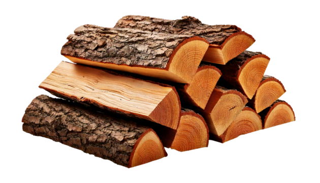 Stacked cut logs with rough bark and visible wood grain texture, isolated on a transparent b.png