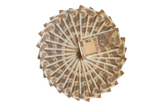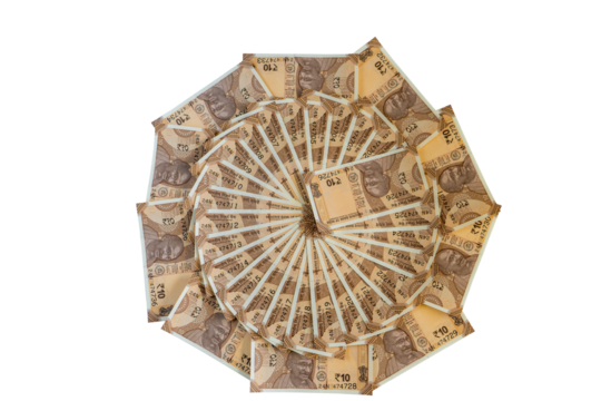 Creative Circular Arrangement of New Indian 10 Rupee Currency Notes