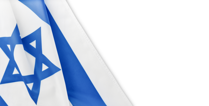 Israel flag. Independence Day of Israel. National Israel flag with star of David over white background clipping path. Element for design. Close up. National flag with place for text.