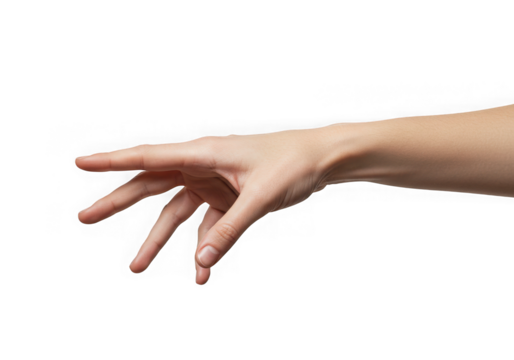 Caucasian woman's hand reaching out transparent background