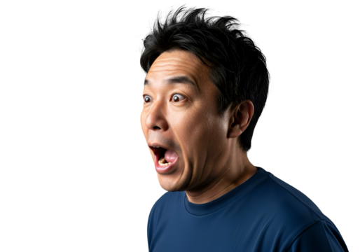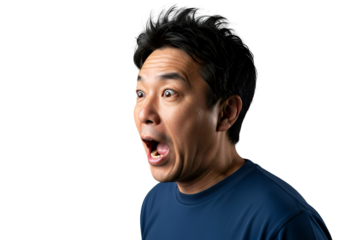 Surprised Asian Man with Shocked Expression on White Background
