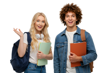 Happy young students with backpacks and books, ready for education