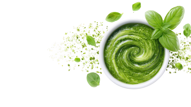 Bowl of green pesto ready to serve freshly made green pesto fills humble bowl bowl