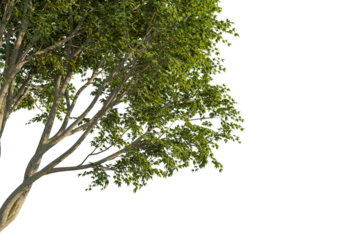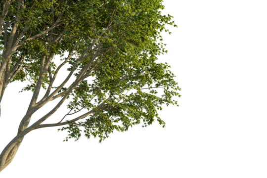 Fagus longipetiolata tree corner view, cutout, transparent background, isolate, Vibrant green tree branches with detailed bark texture and lush foliage