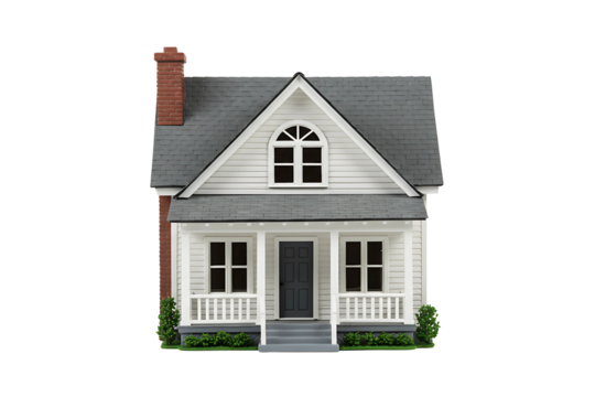 A classic model of a residential house isolated on transparent cutout background, cut out, png