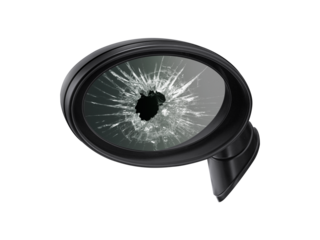 Broken rear view mirror, transparent background