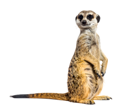Suricate watching around on hind legs, Suricata suricatta isolated on transparent png