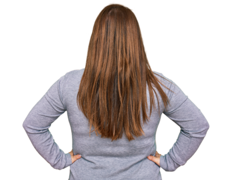 A Fictional Character Created By Generative AI. Rear View of Hair Coiffure Woman with Some Hair Wrap for Open. Generative AI.