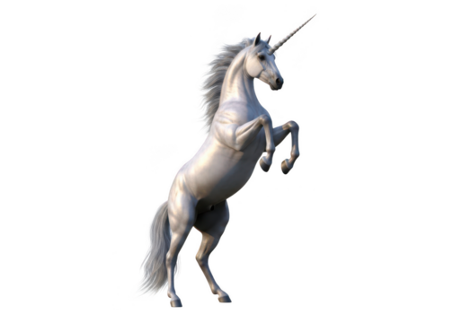 Majestic white unicorn rearing up on hind legs, isolated on transparent background isolated on transparent background
