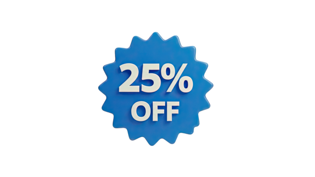 25% OFF discount tag, blue starburst shape