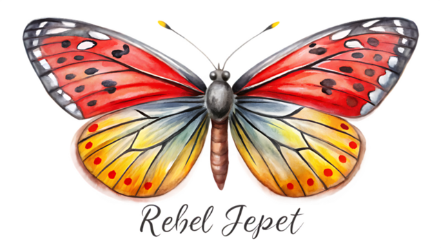 Watercolor painting of a butterfly isolated on transparent background, rebel jepet