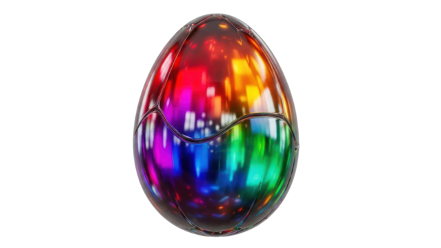 Rainbow jewel egg with stitched segments isolated on transparent background