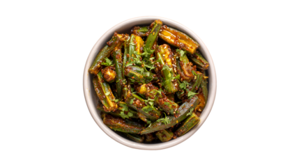 Delicious Spicy Okra Dish in Bowl Indian Cuisine Sesame Seeds Cilantro