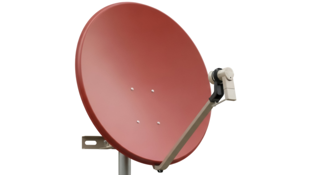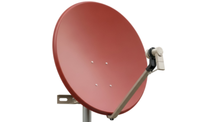 Red satellite dish antenna isolated PNG, communication technology for television and radio signal reception on transparent background