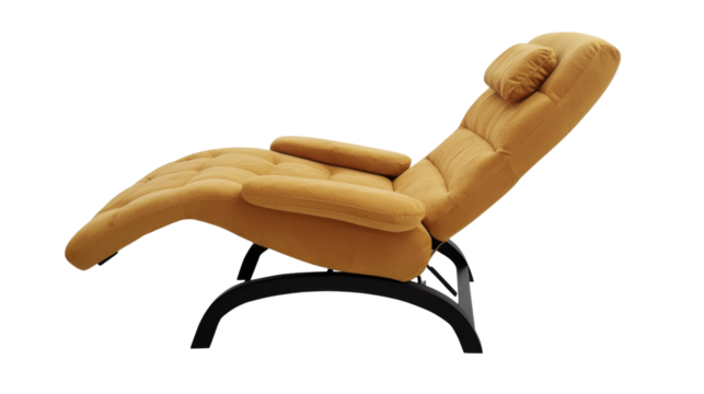 Modern yellow recliner chair on transparent background promoting relaxation and comfort