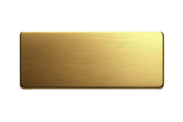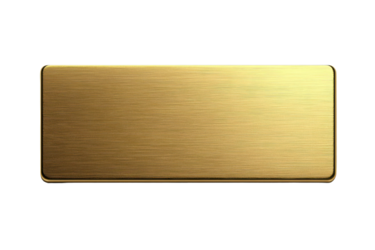 Blank shiny metal nameplate with a golden appearance suitable for customization and professional displays or awards positioned against a white background