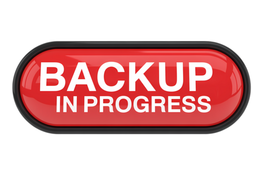 3d icon backup in progress message on a red button with a sleek, modern design . Isolated on transparent background, png
