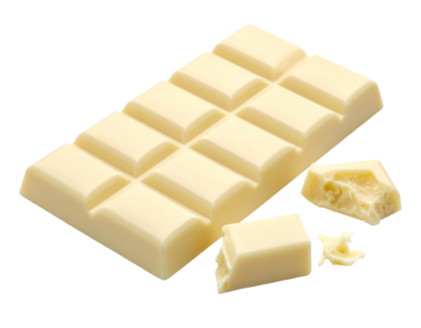 Ivory rectangular bar of confection with broken pieces on black background