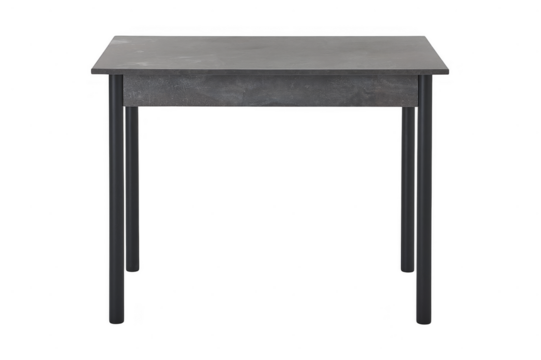 Minimalist black metal table with rectangular design and four legs on transparent background
