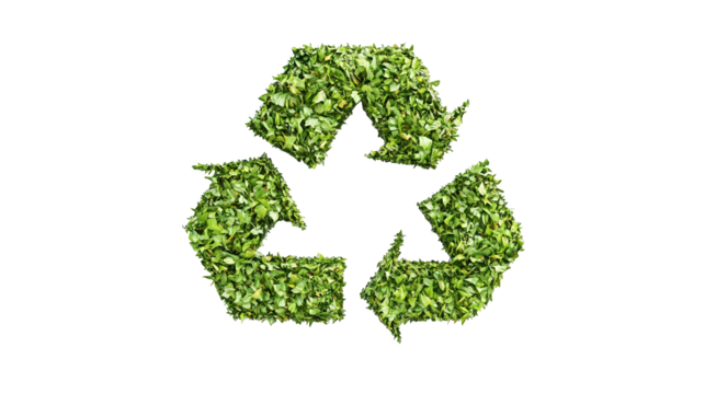 Green recycle symbol made of leaves transparent background