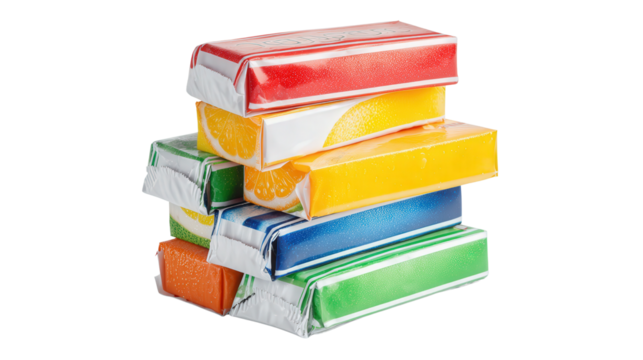 Stack of flattened juice boxes background isolated on a Transparent background, PNG file.