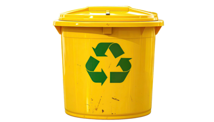 3D Cute cartoon recycling bin with a happy face and recycle symbol on transparent background