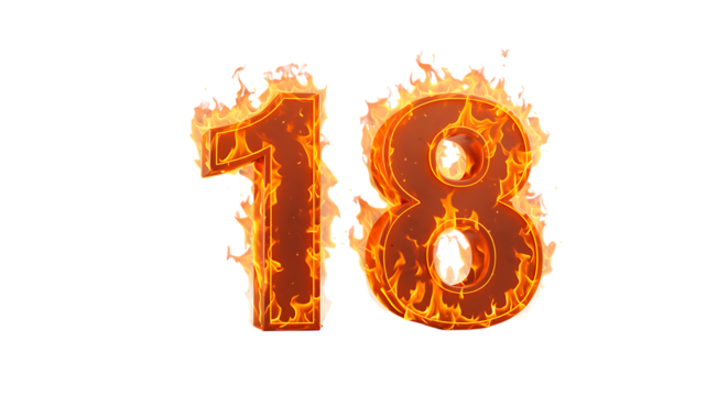 Fiery Eighteen Burning Number Design for Birthday Anniversary Celebrations