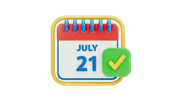 3D Calendar Icon with Checkmark on transparent background