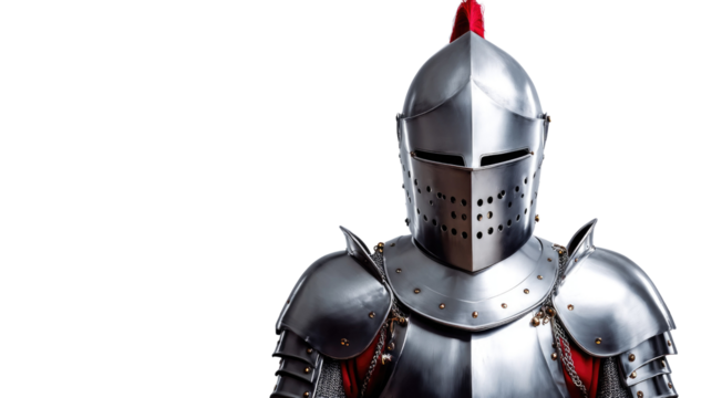 Detailed View of a Medieval Knight Armor with Polished Steel and Red Accents for Historical Representation