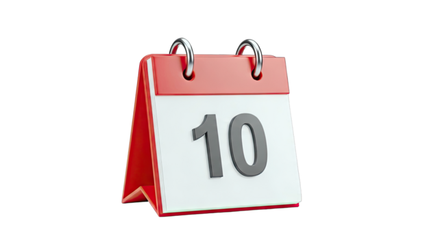 A 3D render of a calendar showing the 15th day of the month isolated on a transparent background with a blue border and white pages with bold red numbers