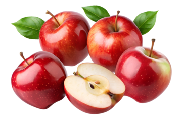 Vibrant red apples on transparent background for design