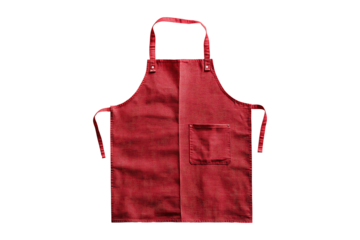 Vibrant red apron displayed on a white background, perfect for cooking or crafting adventures isolated on transparent background
