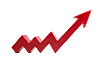 Red arrow graph showing an upward trend isolated on transparent background