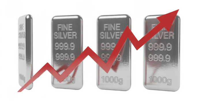 Silver Bars with Red Arrow Graph isolated on a transparent background