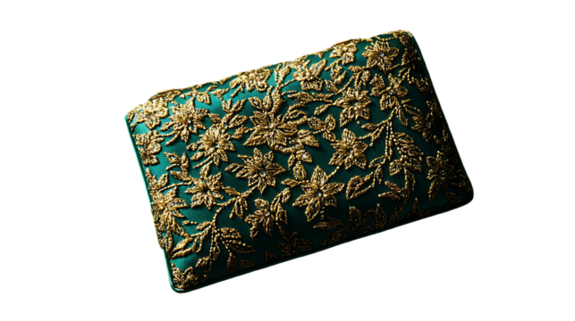 Elegant Vintage Handbag with Colorful Ornate Pattern, isolated on transparent background PNG