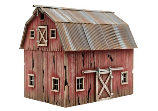 Front View of a Classic Red Wooden Barn with White Trim graphic design isolated on a transparent background