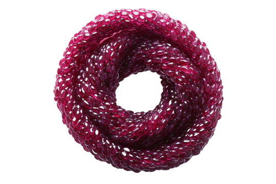 Spiral twist of glossy red beaded bracelet isolated on pure transparency background with shine