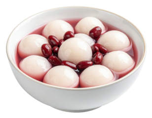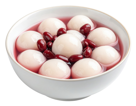 Tangyuan and Red Bean Dessert Soup in a White Bowl, Sweet Asian Treat