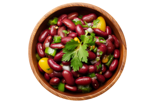 cumbuca de barro com feijão temperado com bacon isolado em fundo transparente