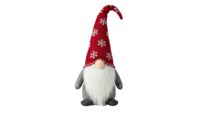 Gnome with red hat and white beard stands on table during winter season inside a cozy home. Isolated on transparent background, png