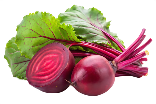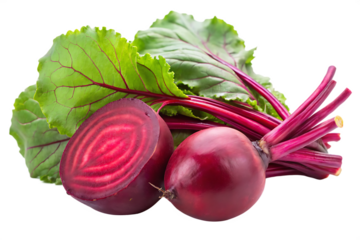 Beetroot fresh red beet with leaves and a half isolated transparent background png