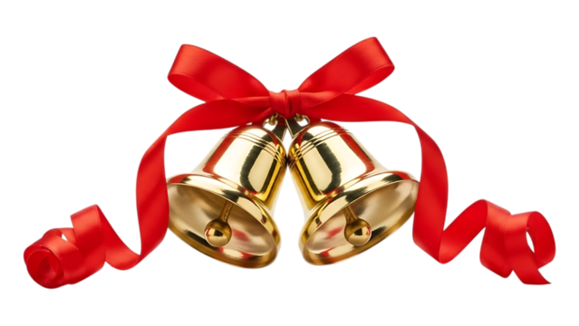 Christmas bells with red ribbons on a transparent background festive decor holiday cheer joyful celebration