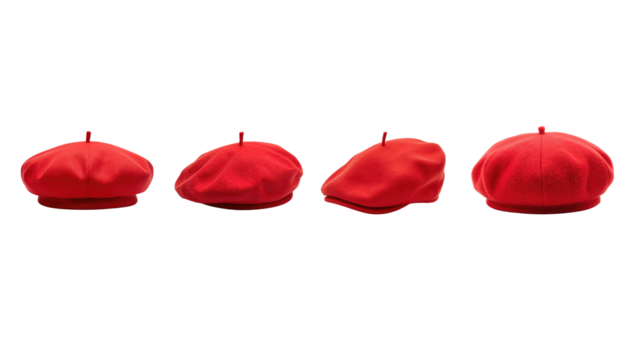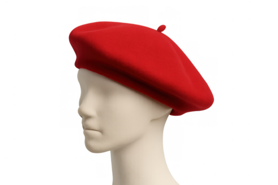 Stylish man wearing red beret and scarf with confidence on transparent background