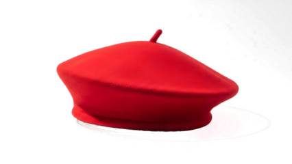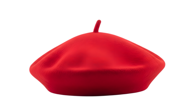Red beret with small tail on isolated on a transparent background fashion accessory clothing headwear