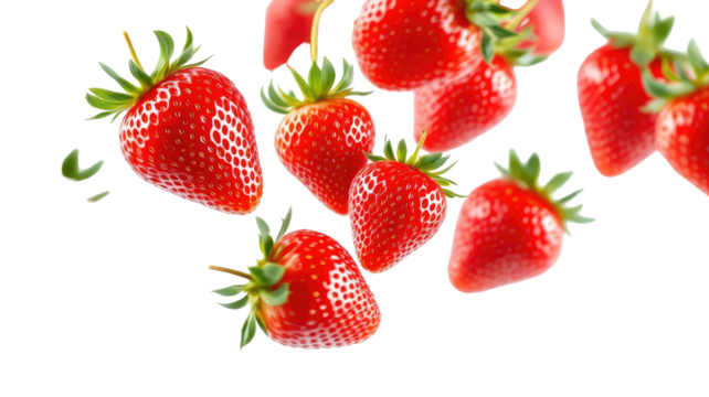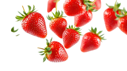 Ripe red berries with green tops, isolated on black, dynamic composition