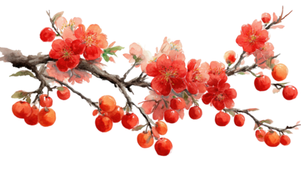 A simple decorative branch with small red blossoms creates a festive, stylized accent inspired by traditional Lunar New Year floral motifs.