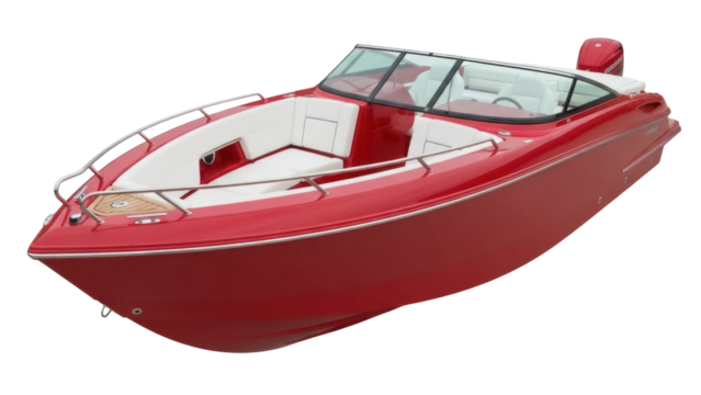 Red framed white boat with transparent background